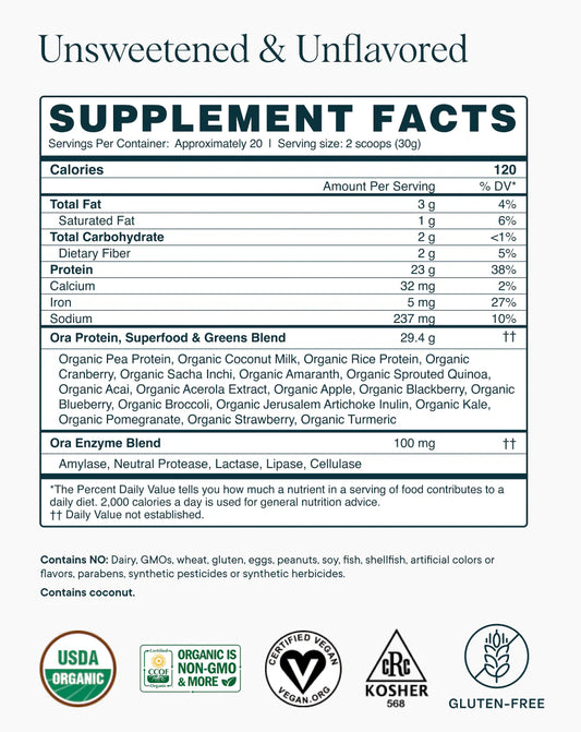 Ora Organic So Lean & So Clean Protein Unflavored Powder Organic -