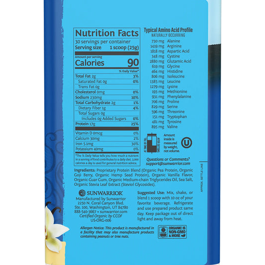 Sunwarrior Protein Warrior Blend Vanilla Powder Organic -