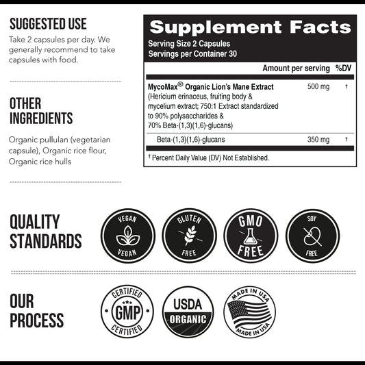 Triquetra MycoMax Lion's Mane Mushroom Extract Capsules Organic -