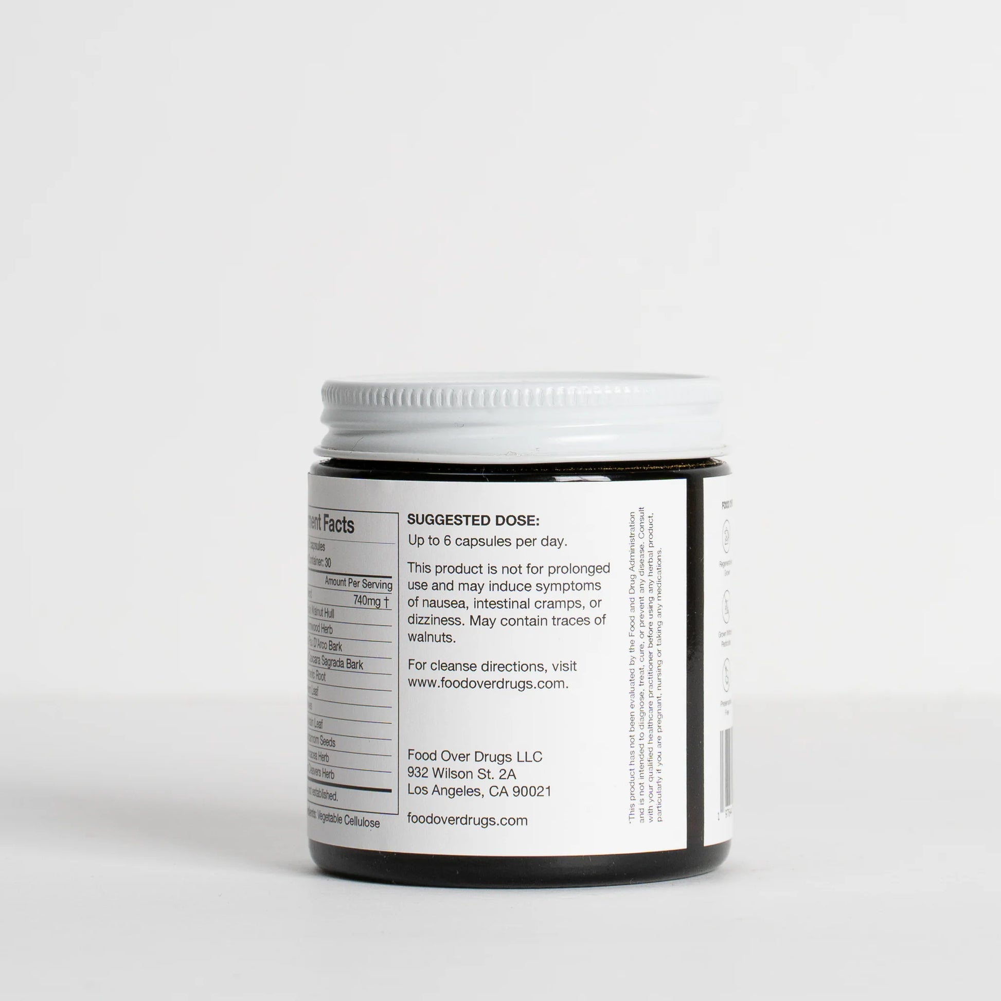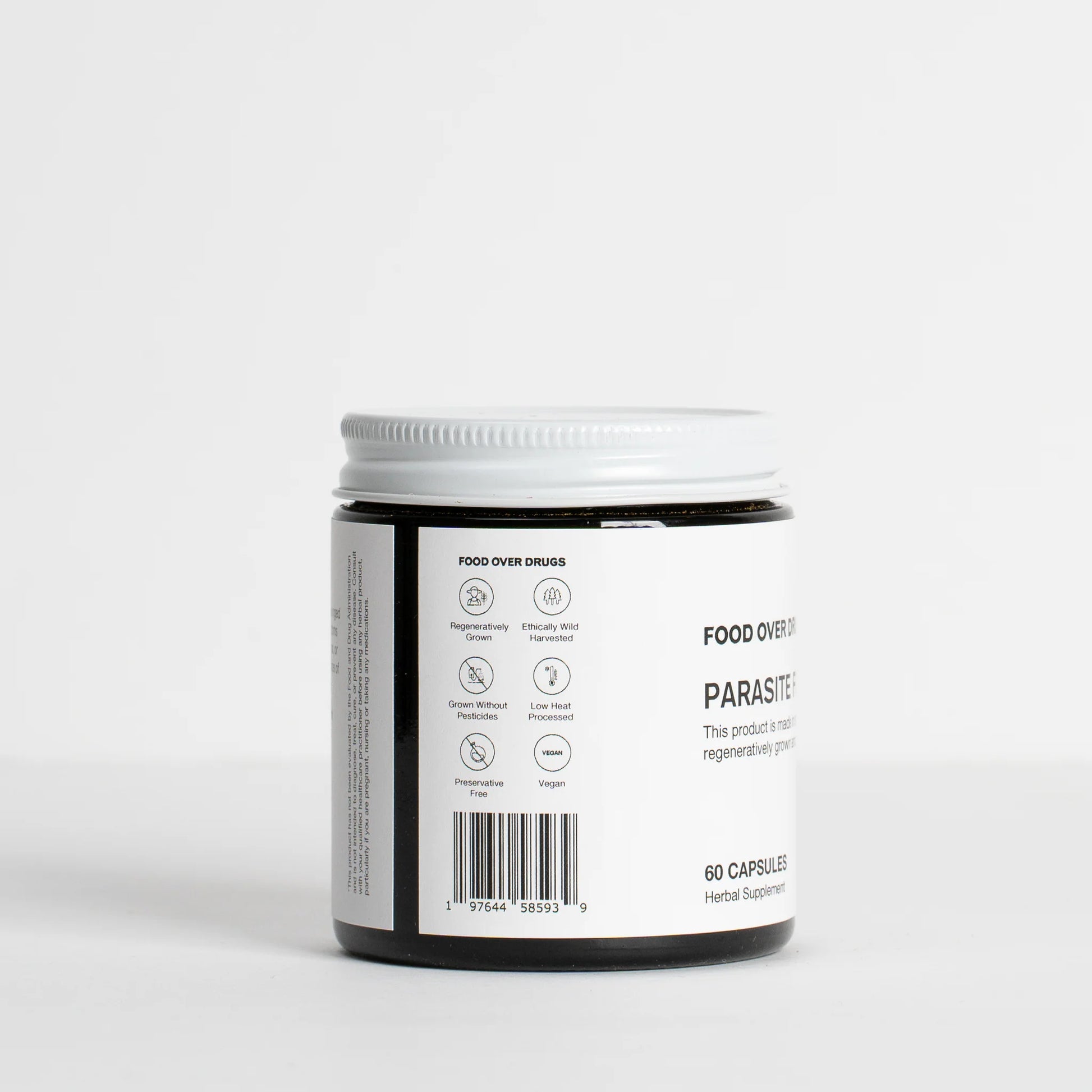 Food Over Drugs Parasite Formula is a potent herbal blend traditionally used to help support the body’s natural cleansing pathways against a broad range of unwanted organisms plus herbs that support nausea comfort, a balanced inflammatory response, healthy lymph flow, and regular bowel movement during the cleansing process. Crafted only from pure, whole herbs with no isolates, extracts, additives, fillers, or preservatives. Every ingredient is organically and regeneratively grown or ethically wild harvested and sourced in partnership with U.S. regenerative farmers for uncompromising purity.