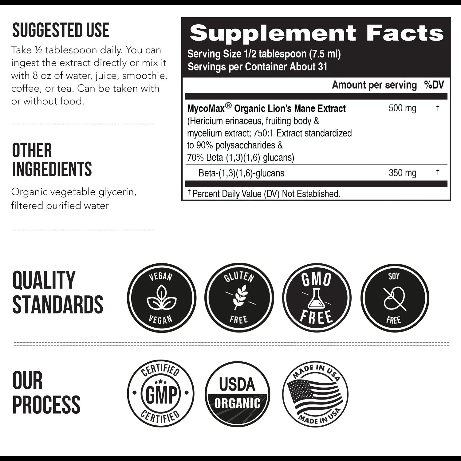 Triquetra MycoMax Lion's Mane Mushroom Extract Liquid Organic